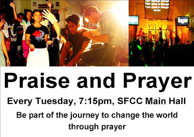 Maximize your weekly schedule to praise and pray. Join us each Tuesday at 7:15 p.m. as we come together corporately and individually to partner with God in praying for the church, the ministry, the community, and the entire country. San Fernando Christian Community is at Ortega Highway, Santiago Norte, San Fernando City, LU. For more information go to christian.com.ph .